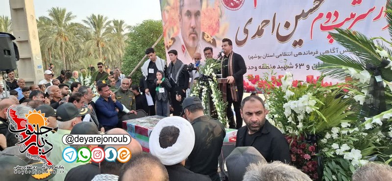به گزارش دیارجنوب، پیکر مطهر شهید مدافع امنیت، شهید سرهنگ «حسین احمدی» عصر شنبه با حضور گسترده همکاران، همشهریان و اقشار مردم در شهر وحدتیه شهرستان دشتستان، زادگاه این شهید والامقام، تشییع و به خاک سپرده شد.