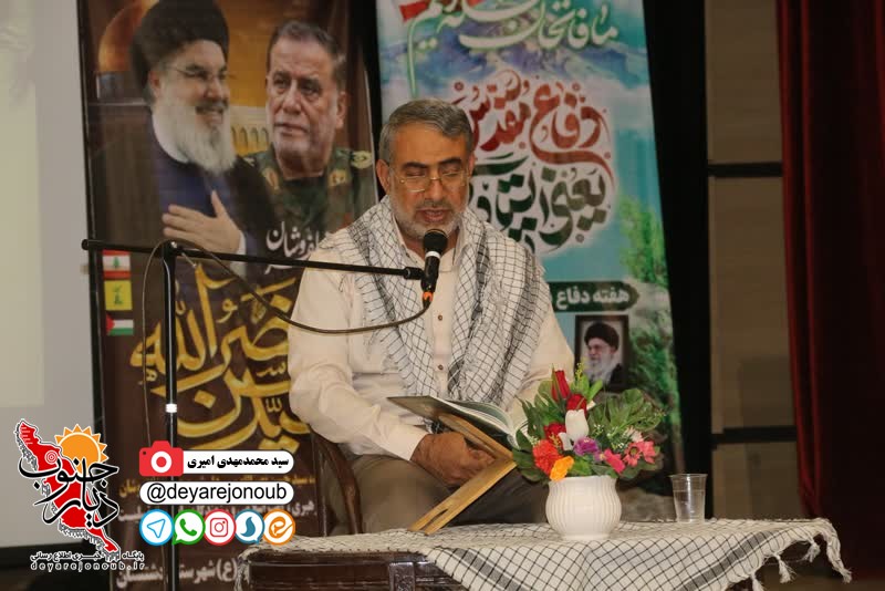 در این مراسم دکتر شاهین محمد صادقی نماینده ادوار مجلس و مسئول بهداشت و درمان جبهه مقاومت ضمن گرامیداشت ياد و خاطره شھدای ھشت سال دفاع مقدس به رشادتهای غیور مردان ایرانی در این دوران پرداخت.